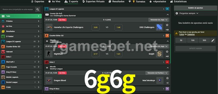 O 6g6g oferece uma grande seleção de opções de apostas em e-sports com probabilidades competitivas